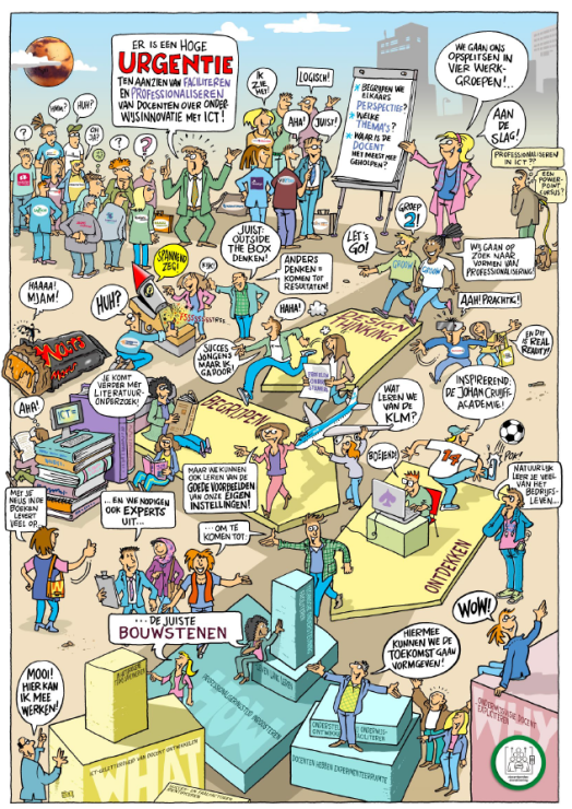 Ondanks dat studenten in een korte stressvolle tijd aan deze opdracht moesten werken, zijn de juiste bouwstenen voor docentprofessionalisering naar boven gekomen. Bouwstenen die ook op de poster van het Versnellingsplan te zien zijn.