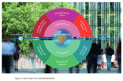 In het 2e gedeelte van het manifest wordt het model voor ontwikkelidentiteit toegelicht. Ik herken in het model het PI-model uit het boek ‘Je binnenste buiten’ over professionele identiteit.