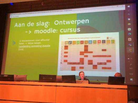 Een paar jaar ben ik functioneel beheerder Blackboard geweest, maar dat mocht ik gelukkig snel overdragen aan Ruud en Marianne, die dat veel beter konden dan ik! In december 2017 werd na een aanbestedingstraject duidelijk dat we afscheid gingen nemen van Blackboard. Vanaf september 2018 werd Moodle de nieuwe leeromgeving. Als ICT&O-adviseur was ik in verschillende rollen nauw betrokken bij het aanbestedings- en implementatietraject. Een intensieve periode waarin ik fijn heb samengewerkt met onze projectleider Wilfred Rubens. Een groot deel van mijn werktijd bestond uit het ondersteunen van docenten en DLO-coaches en het maken van ondersteuningsmateriaal. Naast knoppencursus hebben we ook nav het boek ‘Wijze Lessen’ de vertaalslag gemaakt naar het actief leren met Moodle. Zo leuk om jaren later op een congres je eigen materiaal terug te zien in een presentatie 🙂