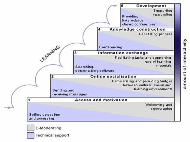 Online leren, online samenwerking, kennis delen… belangrijke onderdelen bij blended learning. Dit proces gaat echter niet vanzelf. Gilly Salmon laat in haar Five Stage Model de stappen laat zien om een klimaat te creëren om samenwerken te bevorderen.